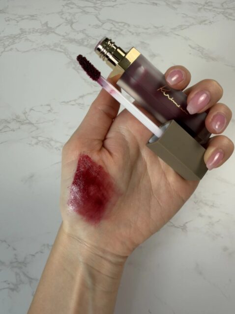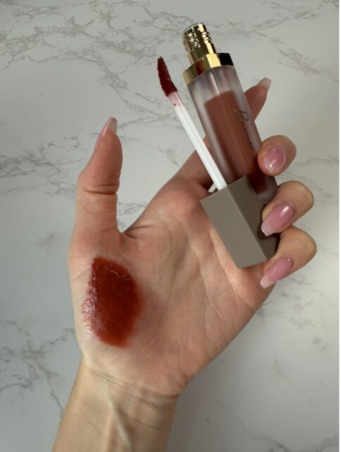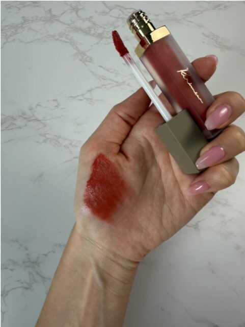 水分感のある軽いリキッドで、チップで塗るとスッと均一に広がります。 唇にのせた直後はツヤがあり、時間が経つと表面だけがフィックスされる感覚。 ベタつきが残りにくく、グロスが苦手な方でも使いやすく感じました。