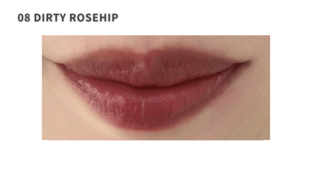 08 ダーティーローズヒップくすみ感を含んだローズピンクブラウン。自然な血色感を演出。ブルベ夏・イエベ