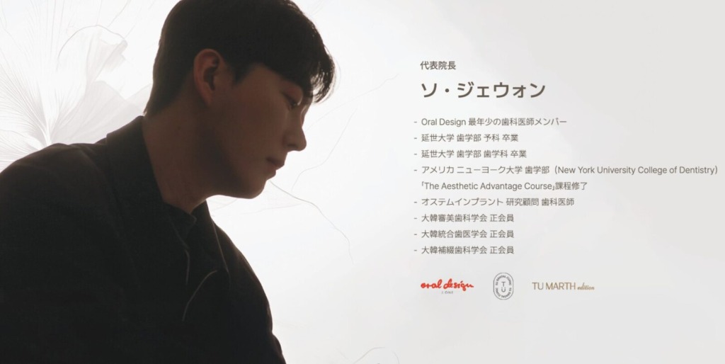 ソ・ジェウォン代表院長は、国際的な審美歯科の専門組織「オーラルデザイン」に最年少歯科医士として選ばれた実力派ドクターで、その技術力とセンスが高く評価されています。